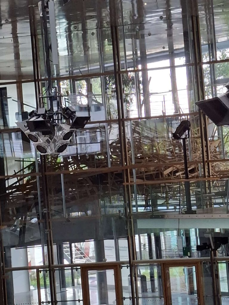 Da es so schön war, die Sonne schien und wir alle doch noch Lust auf „Mehr“ hatten, sind wir kurzentschlossen vom Haus der Geschichte zum Ausstellungsplatz zwischen Kunst- und Ausstellungshalle und dem Kunstmuseum Bonn gegangen. Ziel war „Vert“, eine nachhaltige Holzkonstruktion, an der sich verschiedensten Grünpflanzen emporranken, mit dem Ziel, zu einem grünen, kühlenden Segel heranzuwachsen. Mehr Informationen dazu findet ihr hier: