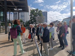 Nach der Innenbesichtigung folgte die Außenbesichtigung; wir spazierten einen Teil des Wegs der Demokratie: ehemaliger Sitz des Bundesrats, das Bundeskanzleramt, der „Lange Eugen“, Plenarsaal, Wasserwerk…