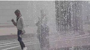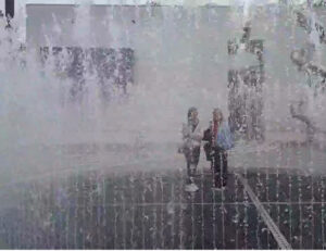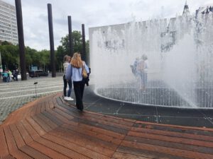 Noch ein Hit (und völlig neu für mich): das Wasserspiel auf dem Platz – ein Springbrunnen, in dem man mitten drinstehen kann, von Wasser umgeben, aber trocken bleibt.