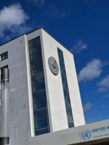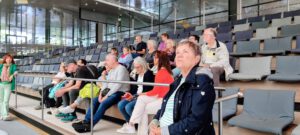 Mit guter Laune und strahlendem Wetter fuhren wir mit der S-66 nach Bonn. Wir waren so früh da, dass wir den Sonnenschein nutzen und gemütlich auf einer Bank vor dem Plenarsaal sitzen und plaudern konnten, bis die Führung losging.