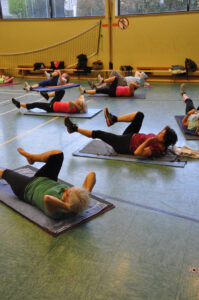 Hier findet eine hervoragende Prävention für die Wirbelsäule statt. Mit Musik geht das Aufwärmtraining los, es werden viele abwechslungsreiche Übungen für die Stützmuskulatur gemacht. Zum Abschluss gibt es eine wunderbare Entspannung, bei der schon so Mancher eingeschlafen ist.